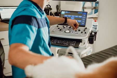 Deze techniek maakt gebruik van (onhoorbaar) ultrageluid. Het geluid verplaatst zich door het lichaam en reflecteert op grensvlakken tussen zachte en hardere structuren. Op die manier kunnen we onder andere organen in beeld brengen, en zicht krijgen op de grootte, structuur en eventuele pathologische afwijkingen.