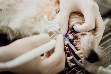 Zit er een reukje aan de adem van uw huisdier? Dan wordt het tijd om zijn gebit te laten controleren. Vaak volstaat een grondige reiniging om de aanwezige tandplaque en tandsteen te verwijderen. Is dat niet het geval? Dan wordt de tand getrokken. Ook de tandjes van knaagdieren moeten regelmatig nagekeken en al dan niet bijgevijld worden.